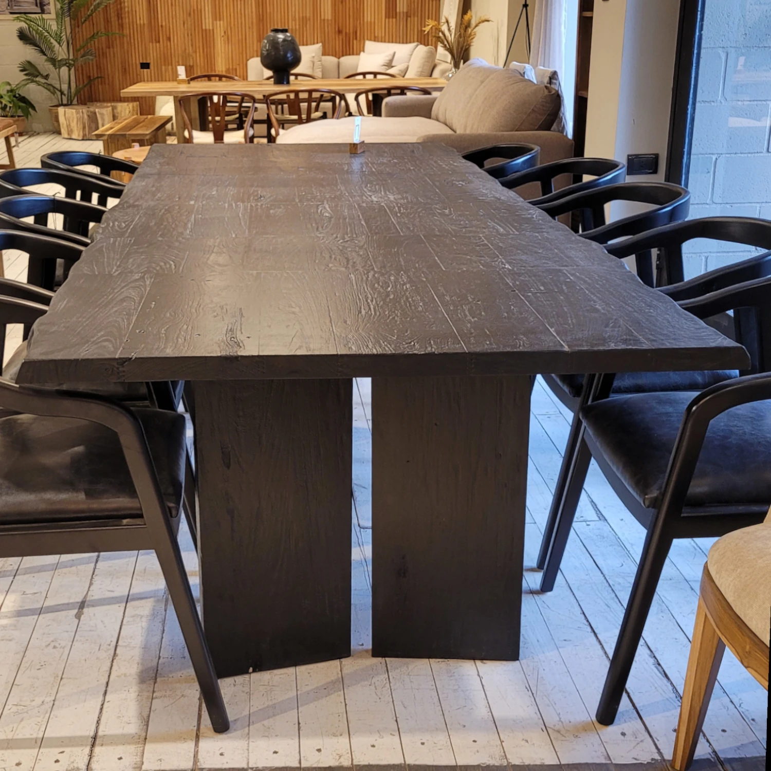 Mesa De Comedor De Madera Laurel Tapa Irregular Con Terminación Negro Laqueado