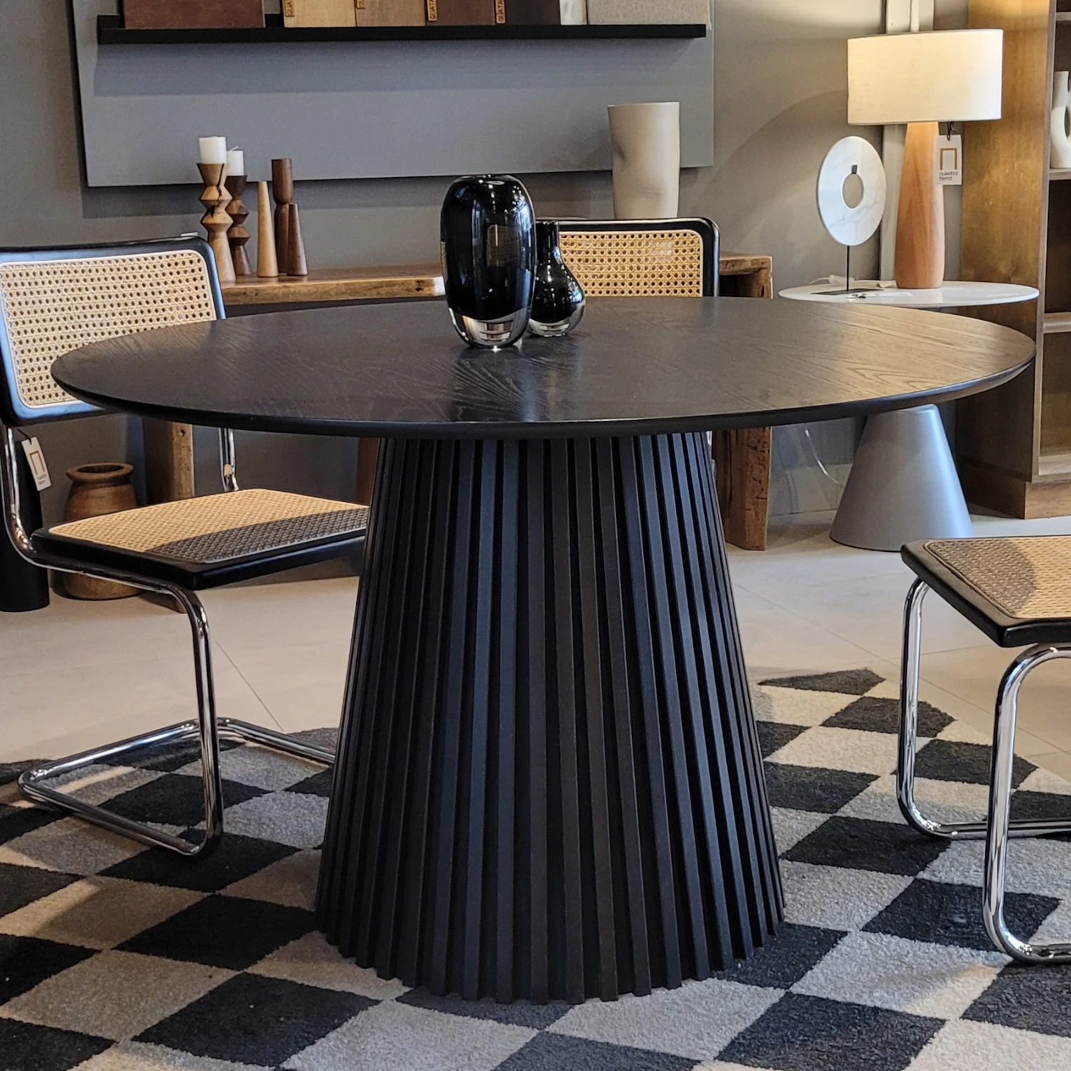Mesa De Comedor De Madera Laqueada Negra