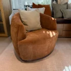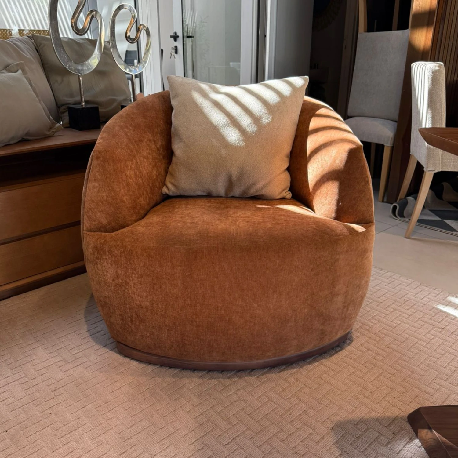 Sofá De 1 Cuerpo Tapizado En Género Antimanchas Color Terracota Con Zócalo De Madera Maciza